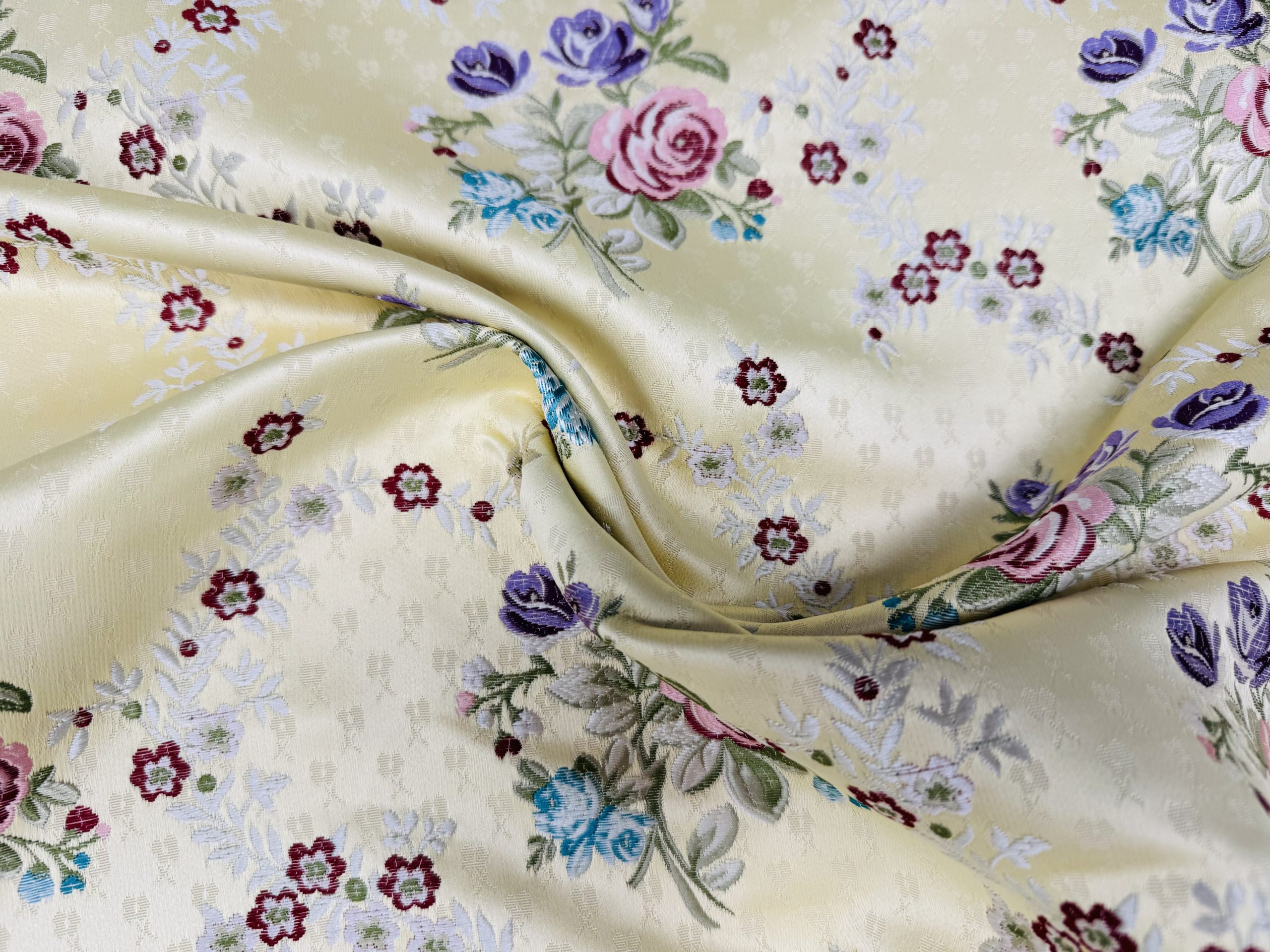 Perfecto corte de tela fallera Mirana para fallera, indumentaria tradicional festiva, aplicación en moda y en liturgia.