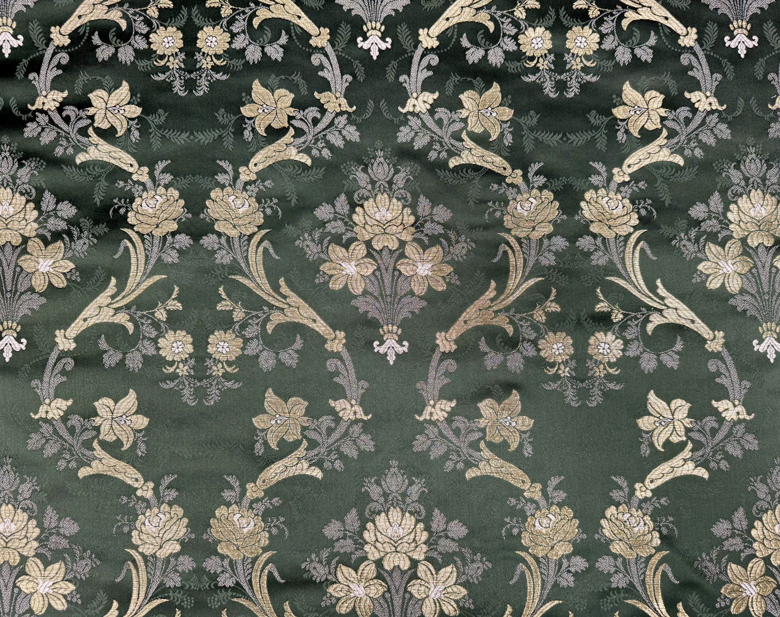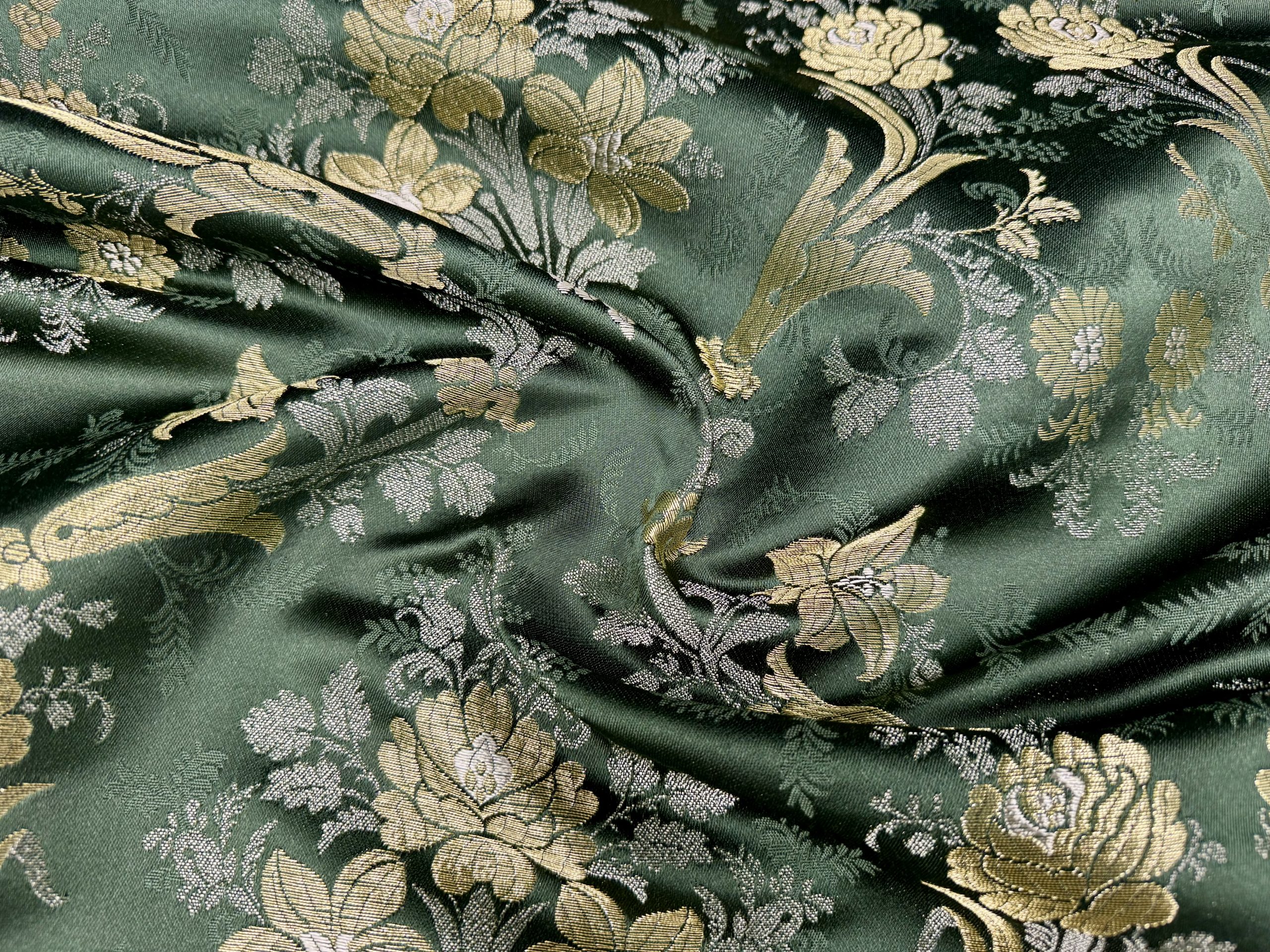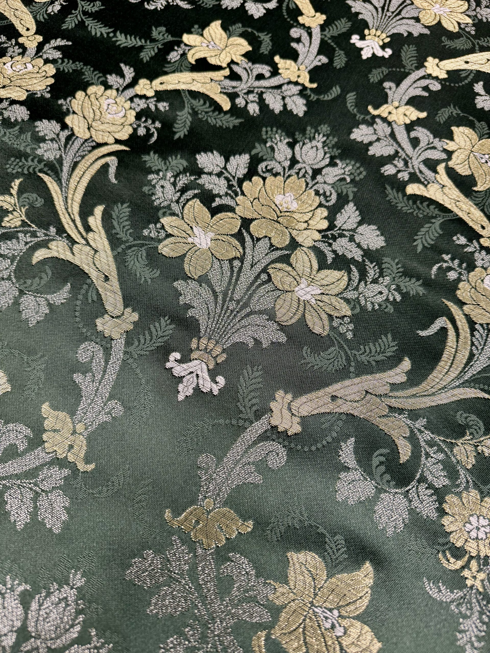 Corte Tela Fallera Santa Ana en color Verde Silvestre y con metal en oro de Compañía Valenciana de la Seda.