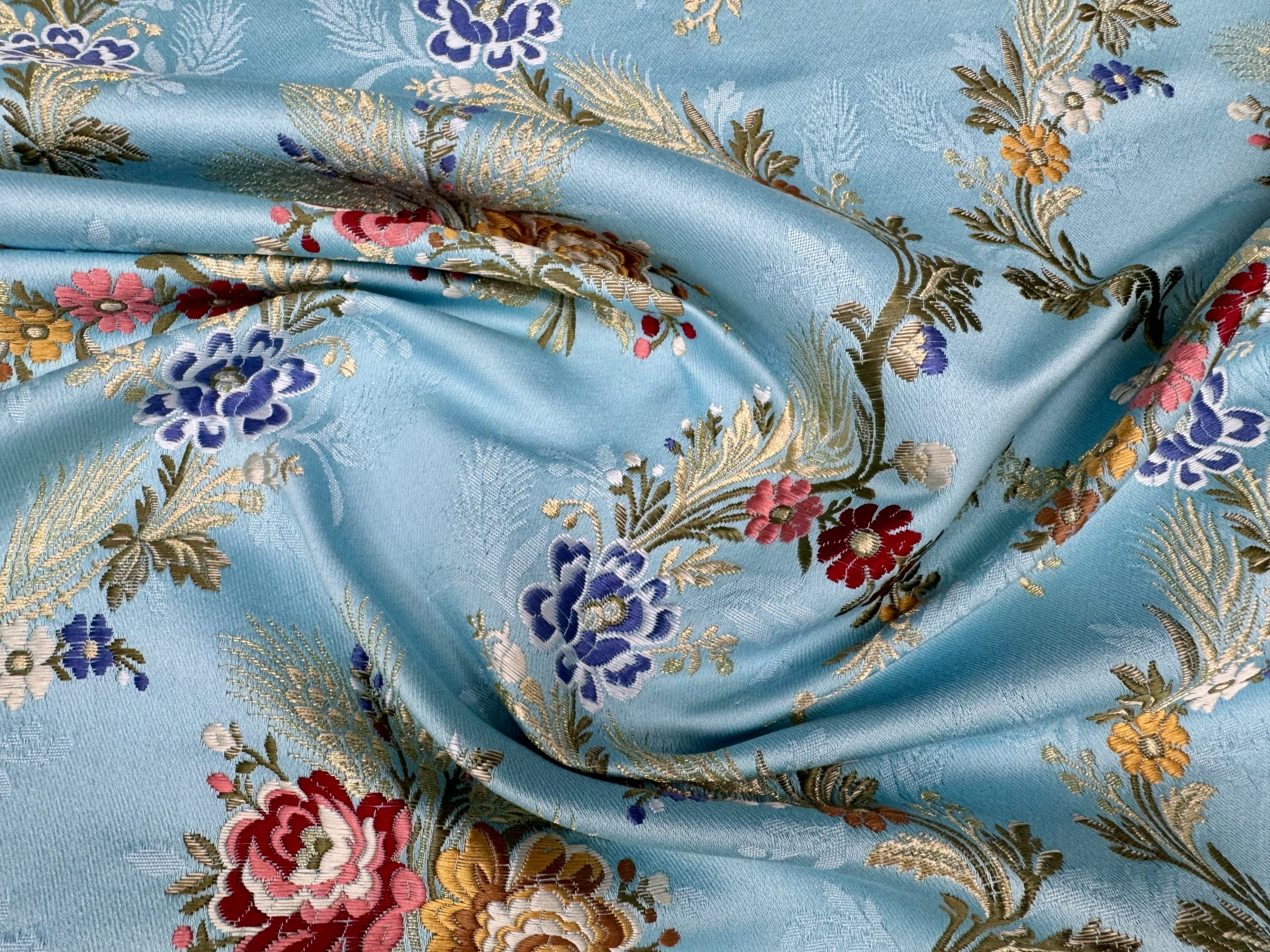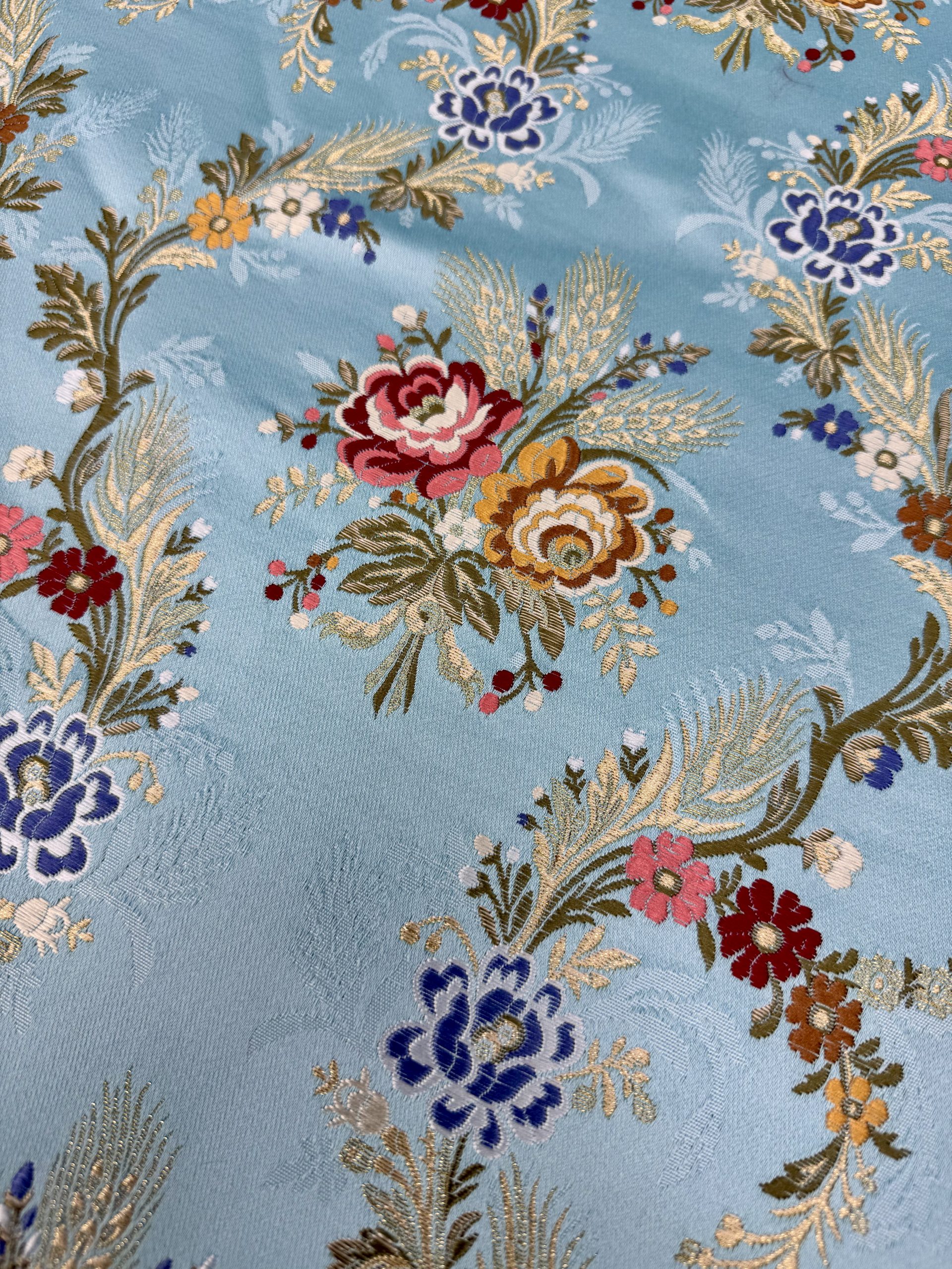 Perfecto corte de tela fallera Trieste para fallera, indumentaria tradicional festiva, aplicación en moda y en liturgia.