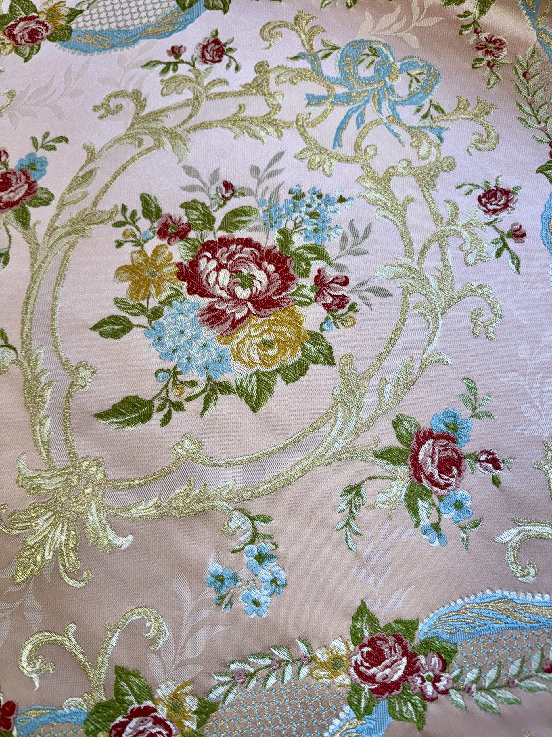 Perfecto corte de tela fallera Victoria para fallera, indumentaria tradicional festiva, aplicación en moda y en liturgia.
